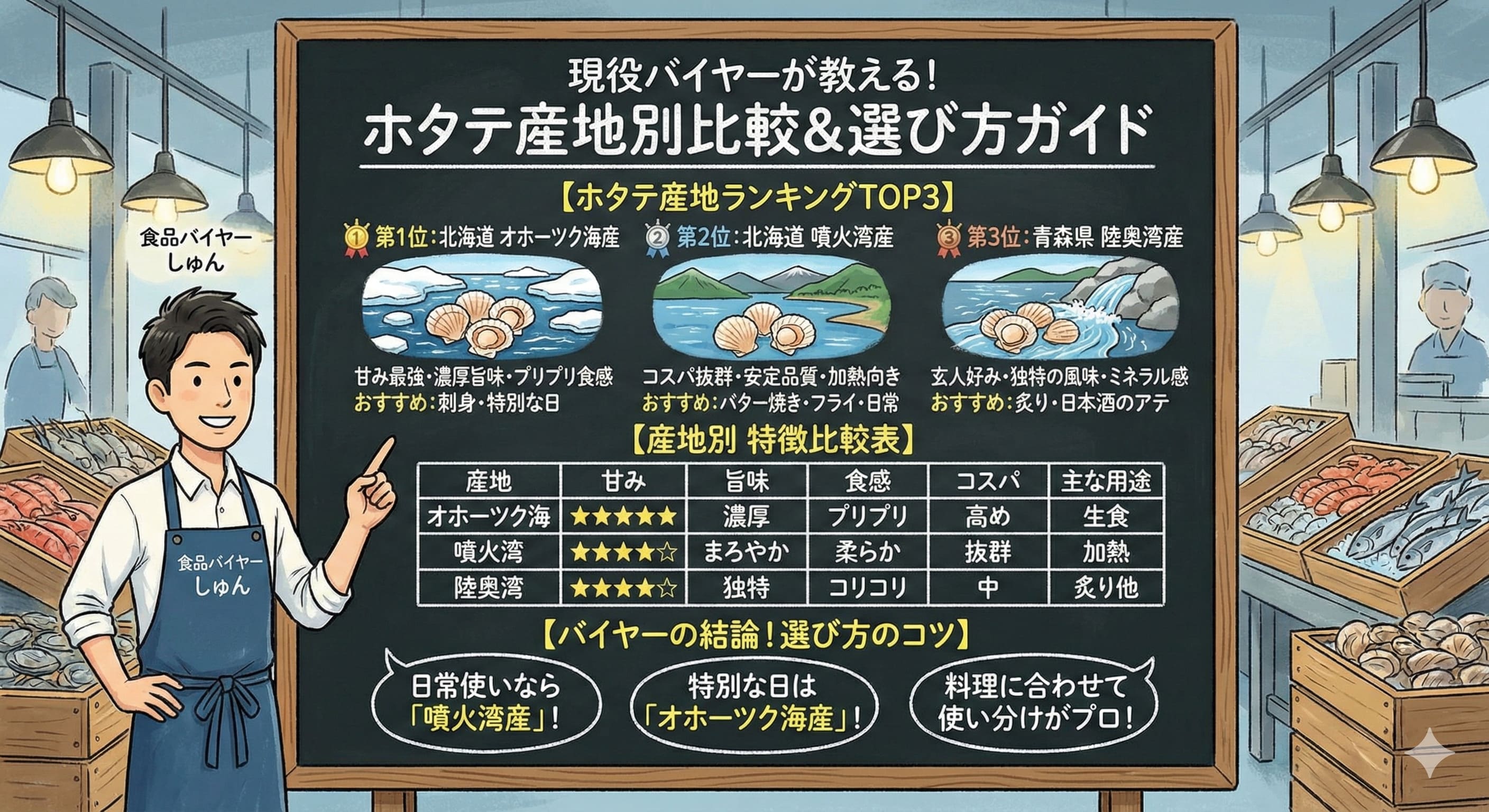 年間数トンのホタテを扱うプロとして、この記事では産地ごとの特徴や選び方のポイントを徹底解説します。