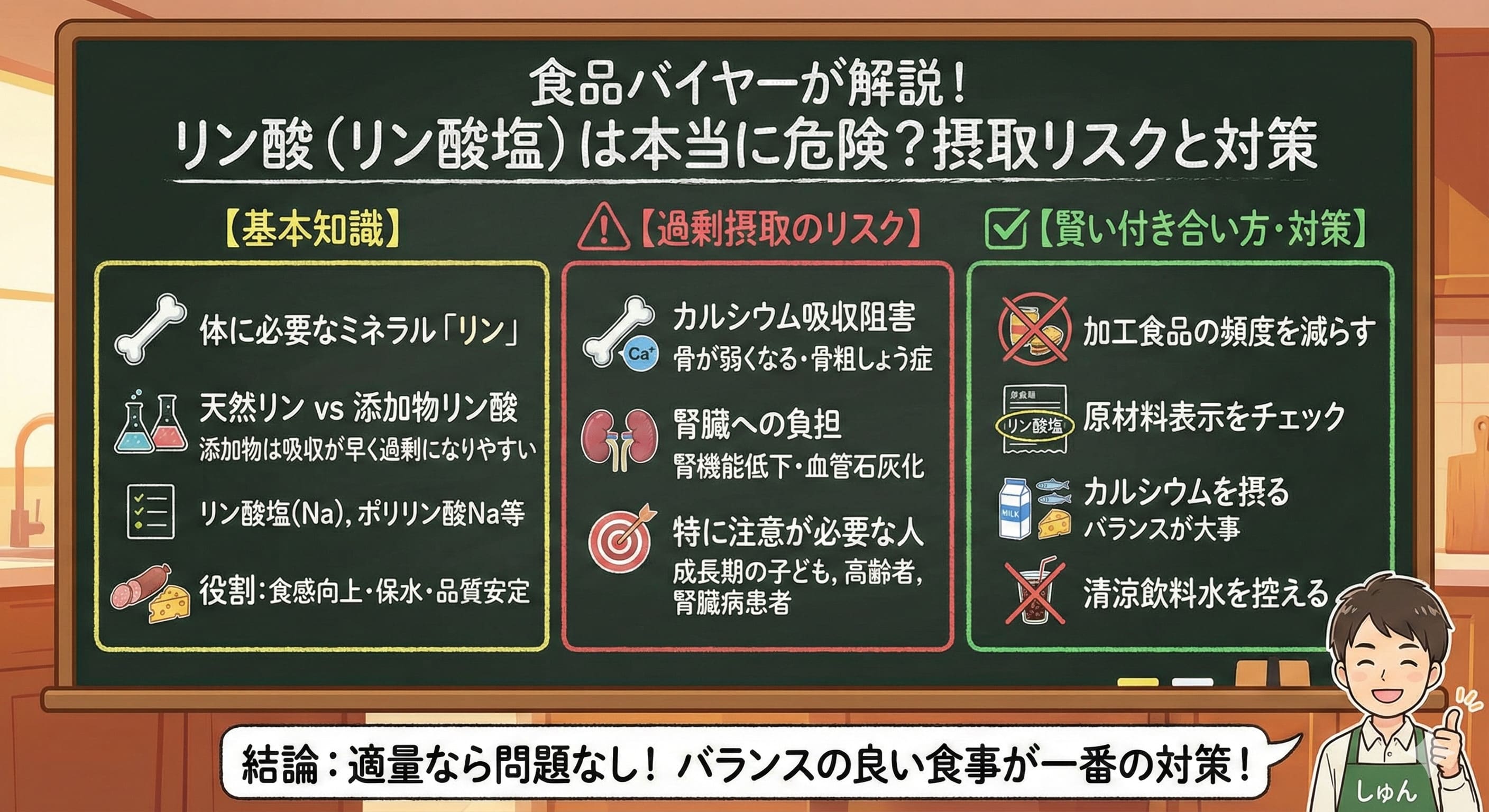 読み終わる頃には、リン酸に対する不安が解消されて、賢い食品選びができるようになってるはずや。